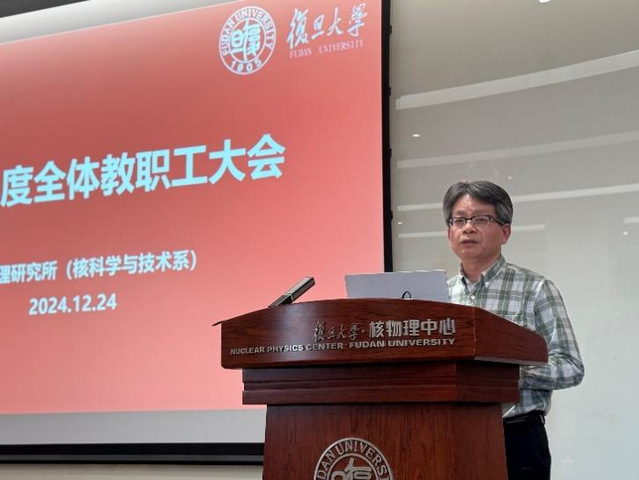随着新年钟声的临近,现代物理研究所(核科学与技术系)迎来了2024年度的教职工述职大会。述职大会于12月24日中午12:00在江湾校区交叉一号楼B栋5楼报告厅召开,系所全体教职工参加了本次会议,会议由系所党委书记赵强主持。