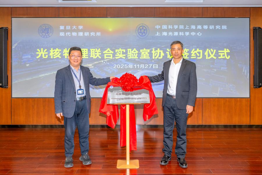 2025年11月27日上午在上海光源园区,中国科学院上海高等研究院上海光源科学中心与复旦大学现代物理研究所举行了隆重的“光核物理联合实验室”签约仪式。联合实验室将聚焦光核物理前沿领域,结合复旦大学现代物理研究所在核物理学科方向的优势与上海光源科学中心在大科学装置方面的平台优势,强强联合,推动我国光核物理基础研究与技术应用方面的创新发展。上海光源科学中心沈文庆院士、赵振堂院士,上海高等研究院邰仁忠副院长、复旦大学副校长马余刚院士、复旦大学现代物理研究所方德清所长等双方单位代表出席了签约仪式。