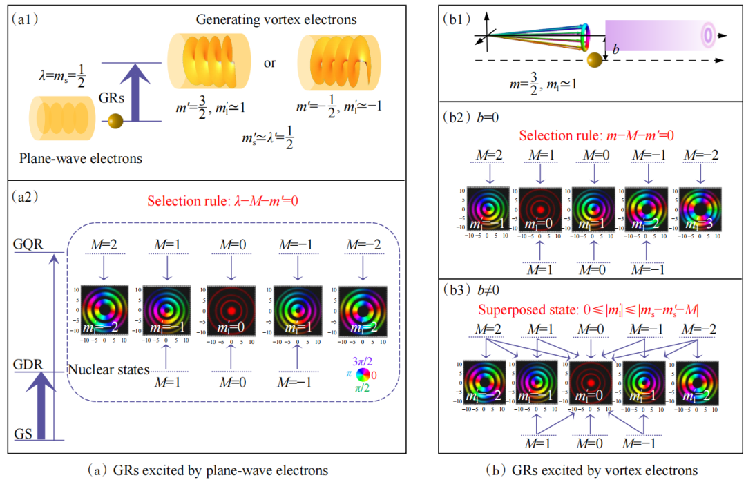 原子核反应是核物理研究的重要手段,也对研究核结构、测试原子核理论具有重要意义。西安交通大学与兰州大学的团队研究了平面波电子和涡旋电子激发巨共振中的角动量转移,建立了一个能够分辨角动量的非弹性电子散射理论。他们发现即使是平面波电子也可以通过选择散射电子的特定角动量态,独立于模型提取更高多极性的跃迁强度(图5),这为核结构研究提供了新的视角。