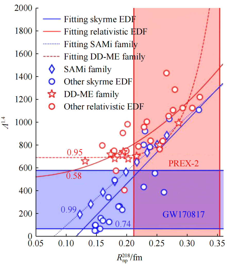 兰州大学研究团队研究了从GW170817推断的潮汐极化率Λ1.4和由PREX−2测量的208Pb中子皮厚度