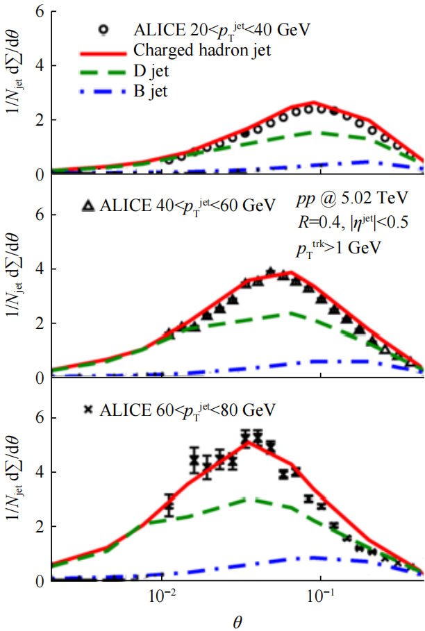 喷注物理也在2025年取得了重要进展。山东大学与华中师范大学团队研究了重味喷注在真空和QGP中喷注子结构上的质量效应(图7)。由于能量−能量关联(EEC)在不同尺度上对喷注物理的强敏感性,因此是研究喷注子结构的极好观测量。喷注EEC的这些特性可以用来探测不同尺度的喷注−介质相互作用物理,该性质有望不久能得到实验验证。