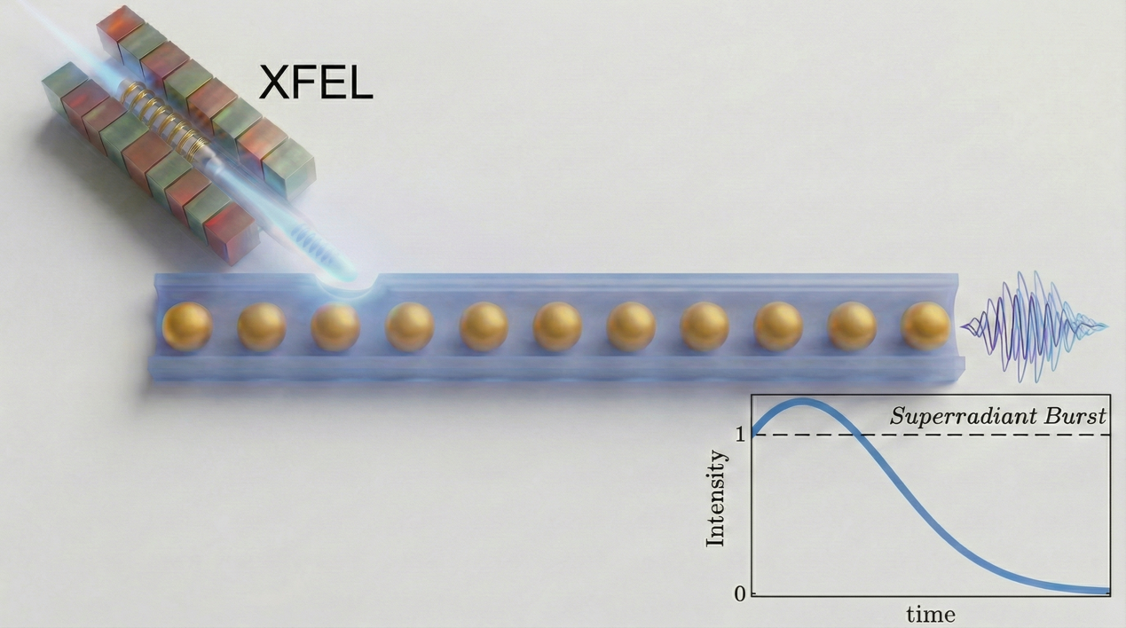 这一概念最早由物理学家 R. H. Dicke 提出。他指出,通过微观粒子之间的相互作用,多粒子系统可以像一个整体一样发光,其辐射强度甚至超过各个粒子独立发光的简单叠加。虽然这一集体辐射机制在可见光等光学频段已有广泛研究,但在能量更高、波长更短的X射线范围,尤其是涉及原子核跃迁时,其行为长期缺乏系统性的认识。